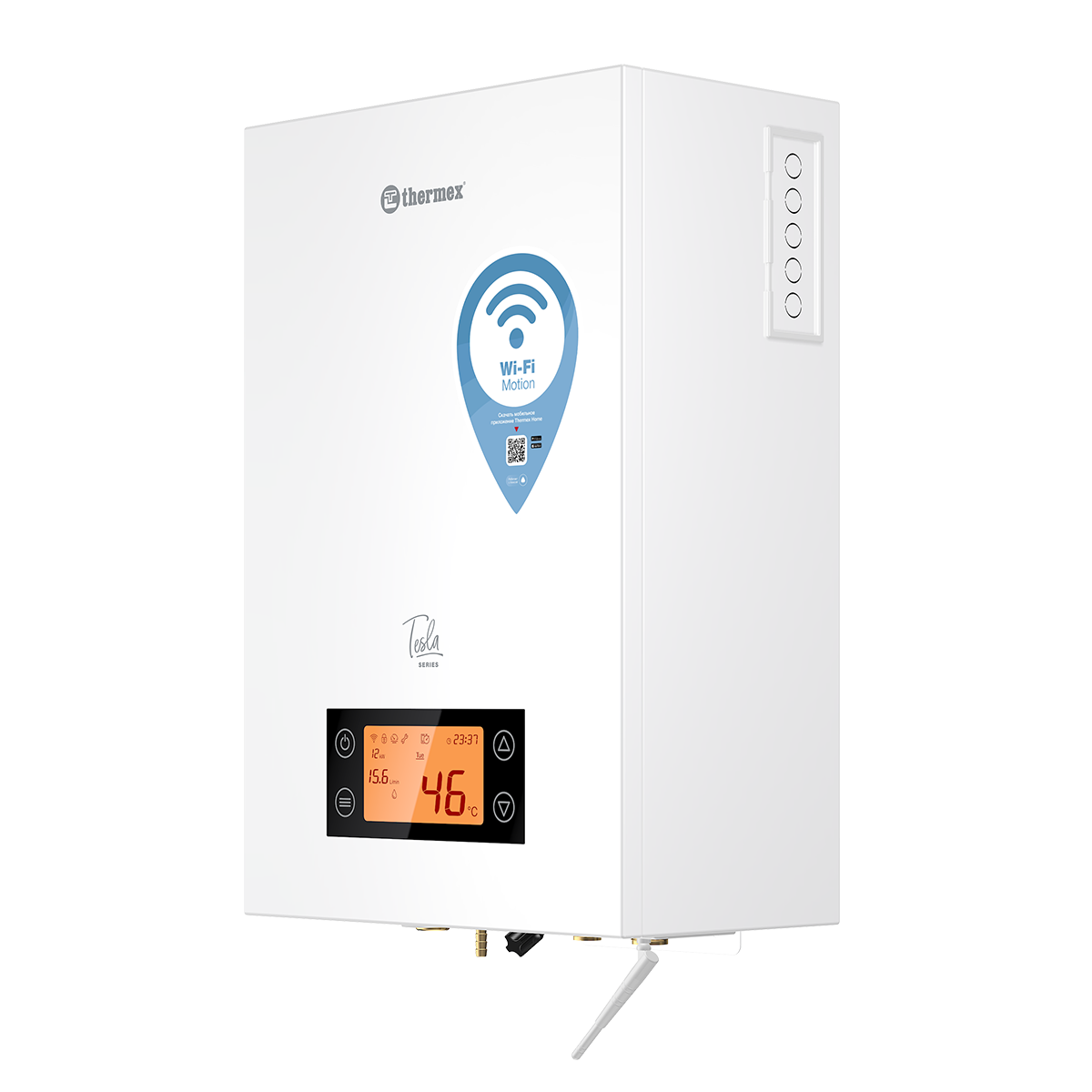 Thermex TESLA - серия электрических котлов с возможности работы с трехходовым клапаном, широкими настройками максимальной мощности и режимов работы. Электрические котлы Tesla Wi-Fi обеспечат стабильный обогрев дома и системы ГВС, а за счет таймеров и управлению через Wi-Fi комфортный микроклимат будет поддерживаться автоматически, наполняя дом теплом и уютом.
