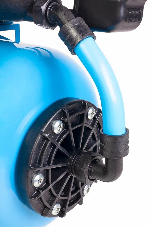 - Наличие гидроаккумулятора позволяет защитить насос от частых пусков, тем самым увеличивая его срок службы. Он же позволяет поддерживать давление в системе, что обеспечивает бесперебойное водоснабжение потребителей в тот момент, когда насос отключается. Кроме поддержания давления в системе водоснабжения гидроаккумулятор позволяет предотвратить гидроудар.