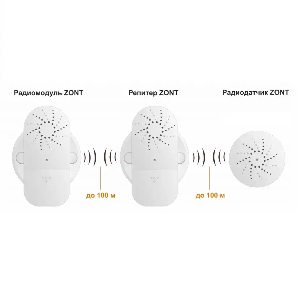 Репитер ZONT МЛ-620 совместим с множеством устройств, включая радиомодуль ZONT МЛ-590, радиодатчики температуры и влажности, а также термостаты. Вы можете подключить до 5 репитеров к одному радиомодулю, что позволяет управлять до 40 радиоустройствами одновременно.