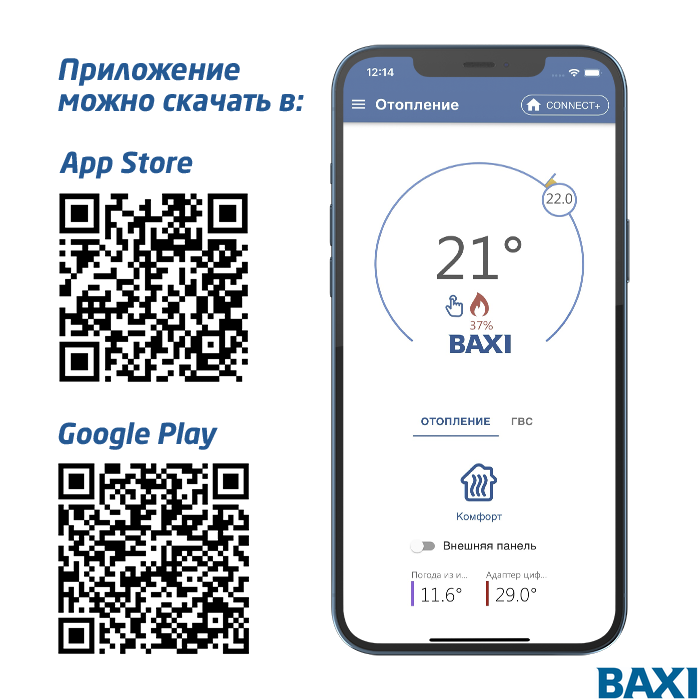 Контроллер BAXI CONNECT+ создан специально для управления системой отопления, в которой используются отопительные котел/котлы BAXI и De Dietrich. Имеет собственное мобильное приложение с Мастером настроек, позволяющим в несколько кликов выполнить все необходимое регулирование системы отопления.