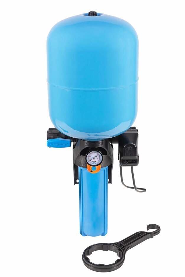 Предназначен для поддержания заданного давления в системах водоснабжения с предварительной фильтрацией воды. Легкий и удобный монтаж. Не требует дополнительной настройки. Автоматическое управление включением/выключением электронасоса. Полный комплект для автоматизации системы водоснабжения. Предварительная фильтрация воды. Календарь смены картриджей фильтра. Вся система устойчива к коррозии. Позволяют подключаться в любом удобном месте магистрали вне зависимости от направления потока воды. Объем бака 18 литров.