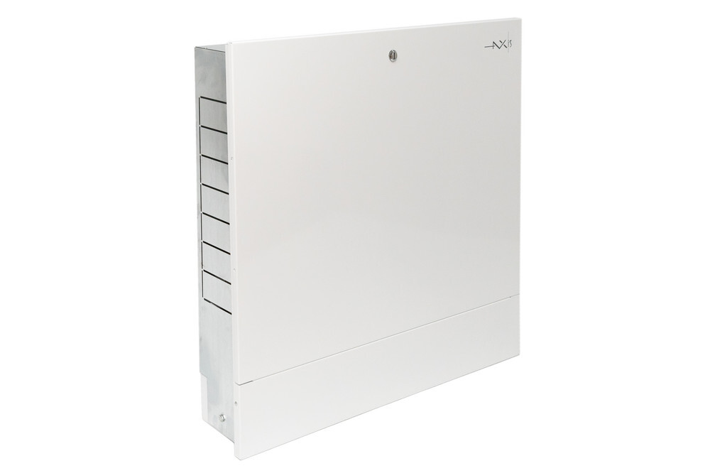 Шкафы распределительные торговой марки AXIS предназначены для монтажа в них распределительных коллекторов для систем отопления, водоснабжения, насосно-смесительных узлов, малых тепловых пунктов и станций поквартирного учёта тепла и расхода воды. Шкаф распределительный наружный серия AXISRN предназначен для наружного монтажа. Шкаф распределительный внутренний (встраиваемый) серия AXISRV предназначен для скрытого монтажа в стеновую нишу.