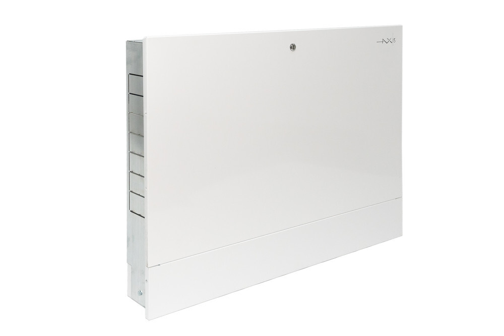 Шкафы распределительные торговой марки AXIS предназначены для монтажа в них распределительных коллекторов для систем отопления, водоснабжения, насосно-смесительных узлов, малых тепловых пунктов и станций поквартирного учёта тепла и расхода воды. Шкаф распределительный наружный серия AXISRN предназначен для наружного монтажа. Шкаф распределительный внутренний (встраиваемый) серия AXISRV предназначен для скрытого монтажа в стеновую нишу.