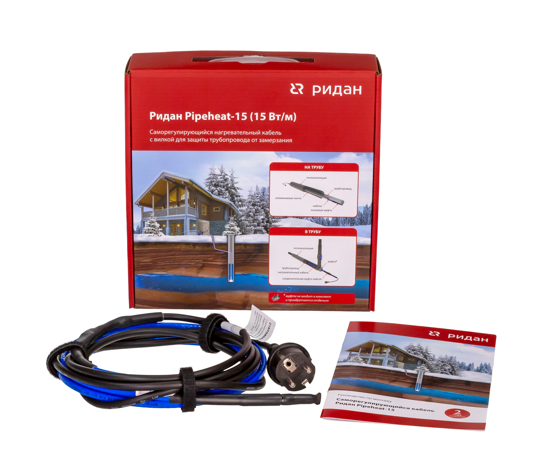 Саморегулирующийся нагревательный кабель Ридан Pipeheat-15, 6 м, 90 Вт с вилкой