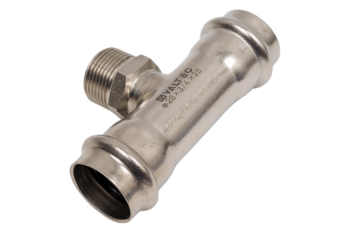 Тройник Valtec с нар.р. нерж. сталь 28х3/4"