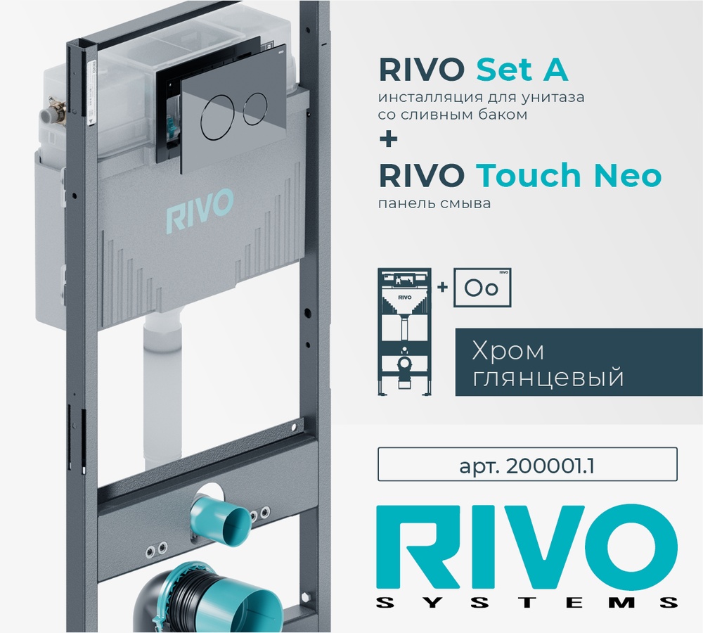 Комплект: Инсталляция для унитаза со сливным баком RIVO Set A + Панель смыва RIVO Touch Neo Хром глянцевый