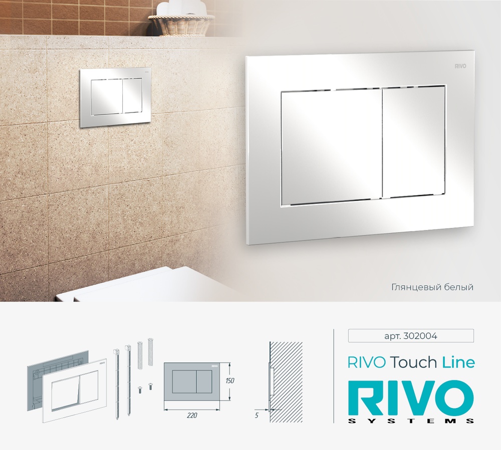 Панели двойного смыва RIVO Touch изготовлены из высококачественных и износостойких материалов, имеют классический дизайн, позволяющий реализовывать элегантные проекты ванных комнат и помещений санитарно-технического назначения.