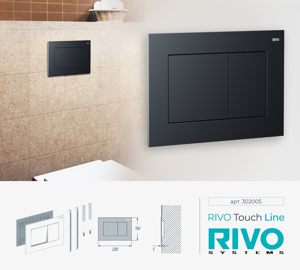 Панели двойного смыва RIVO Touch изготовлены из высококачественных и износостойких материалов, имеют классический дизайн, позволяющий реализовывать элегантные проекты ванных комнат и помещений санитарно-технического назначения.