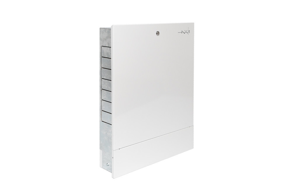 Шкафы распределительные торговой марки AXIS предназначены для монтажа в них распределительных коллекторов для систем отопления, водоснабжения, насосно-смесительных узлов, малых тепловых пунктов и станций поквартирного учёта тепла и расхода воды. Шкаф распределительный наружный серия AXISRN предназначен для наружного монтажа. Шкаф распределительный внутренний (встраиваемый) серия AXISRV предназначен для скрытого монтажа в стеновую нишу.