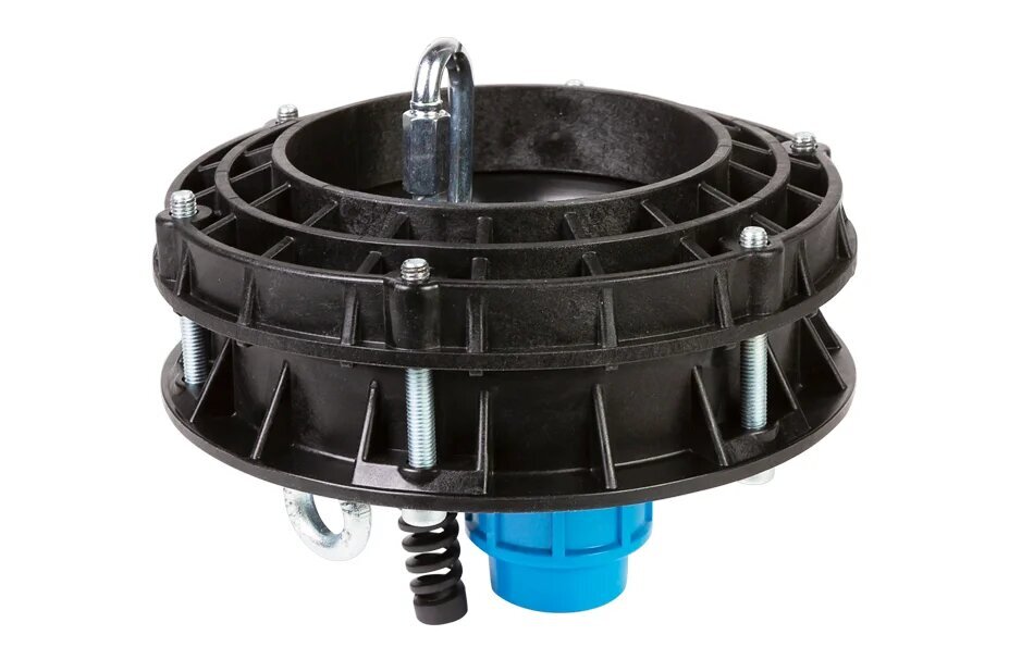 - Отличается простотой монтажа и не требует сварочных работ — для его установки достаточно затянуть болты между основанием и прижимным фланцем, сжимающие уплотнительное кольцо.