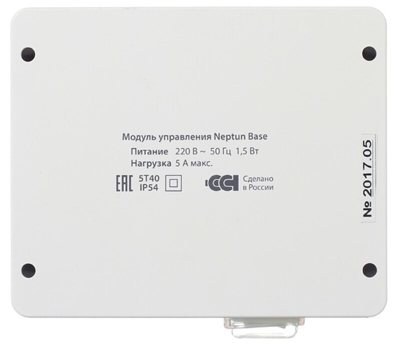 Управляющее устройство нового поколения для систем контроля протечек воды. Предназначен для обработки сигналов от датчиков контроля протечки воды и выдачи управляющего сигнала на исполнительное устройство, перекрывающее воду. Обеспечивает световое и звуковое оповещение об аварии. Накладной монтаж. Предназначен для бытового применения.