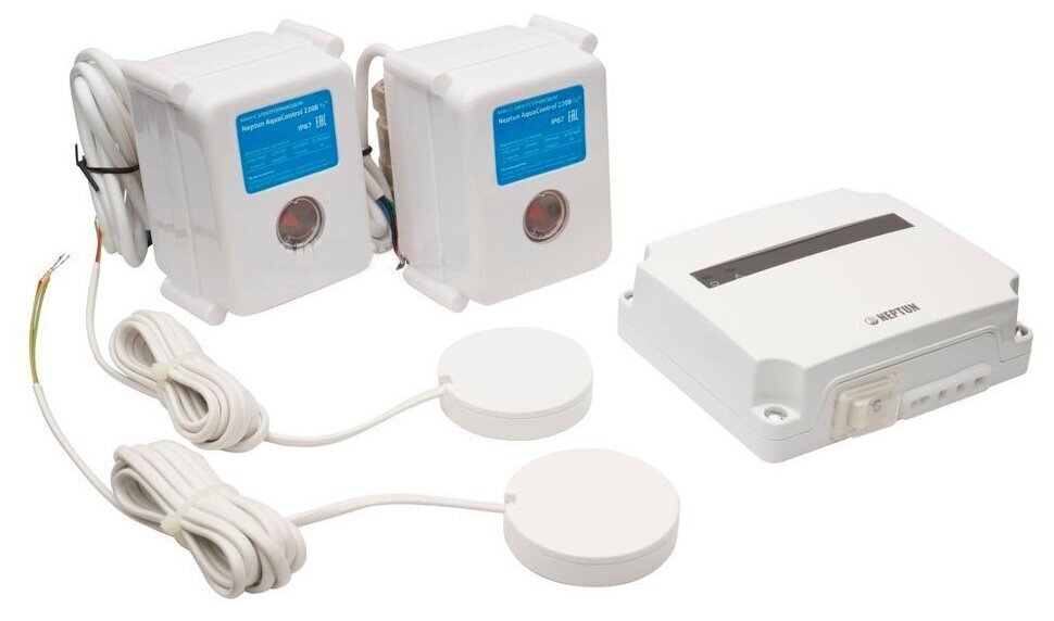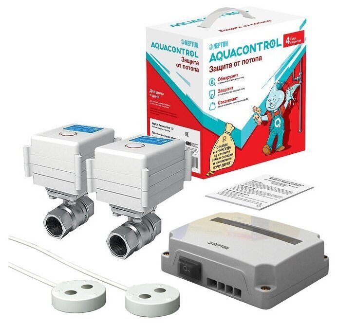 Модуль управления Neptun Base - 1 шт, кран с электроприводом МК - 2 шт, датчик контроля протечки воды SW007 - 2 шт
