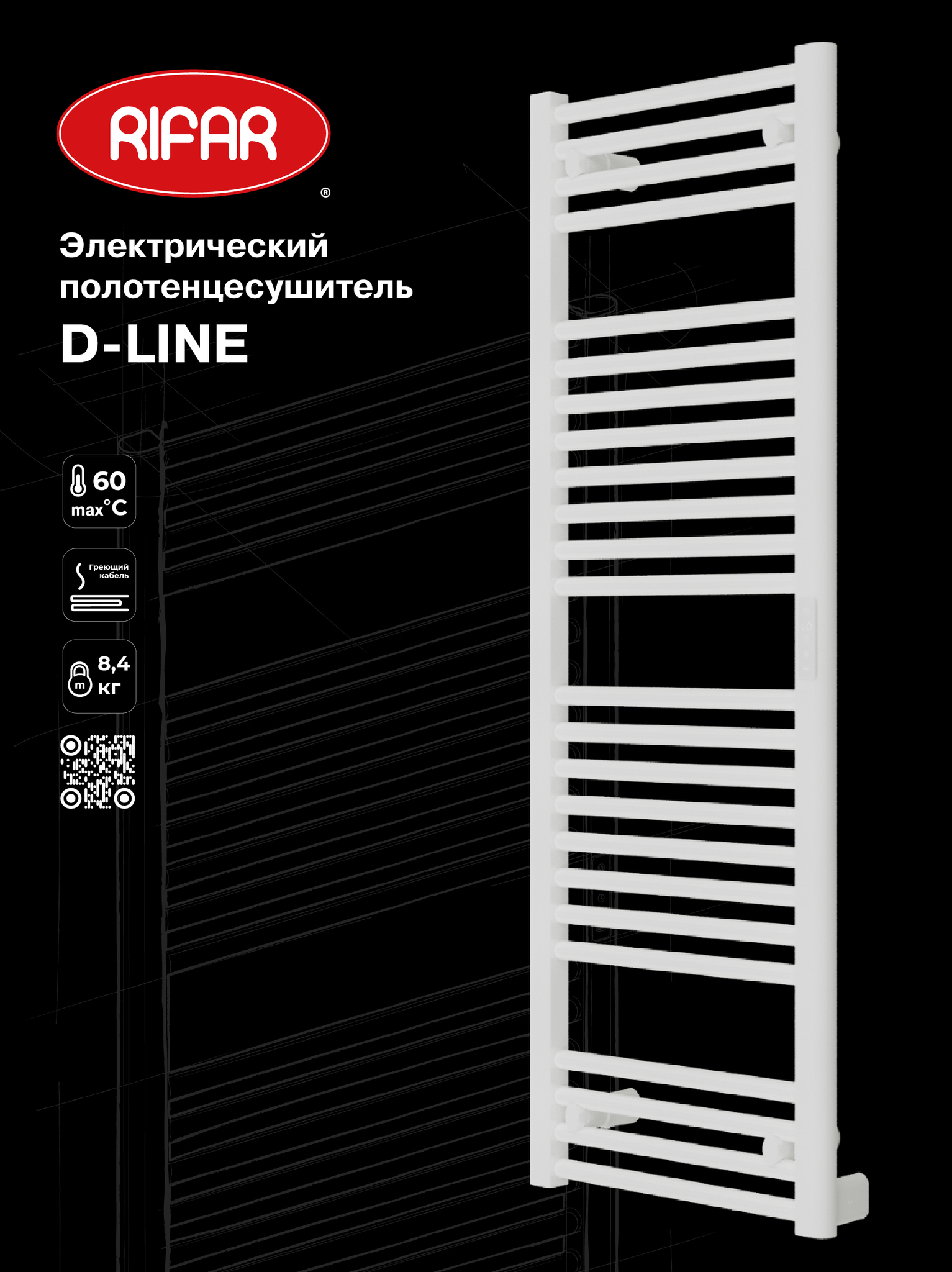 Электрический полотенцесушитель RIFAR "D-LINE" 1200х450 250 Вт Белый