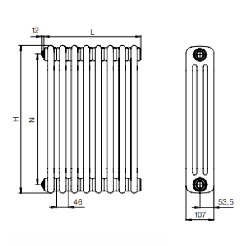 Стальной трубчатый радиатор отопления RIFAR TUBOG 3057 20 секций ТИТАН боковое подключение